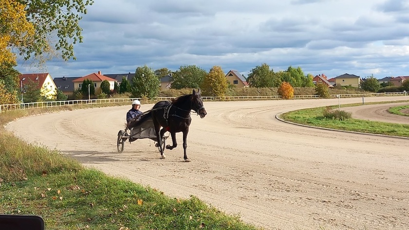bis wir dann endlich auf das stießen, was der Anlage ihren Namen gab: Ein trabendes Pferd samt Fahrer im Sulky. So wurde es ein zwar kurzer, aber dennoch trotz aller Widrigkeiten erfolgreicher Spaziergang.