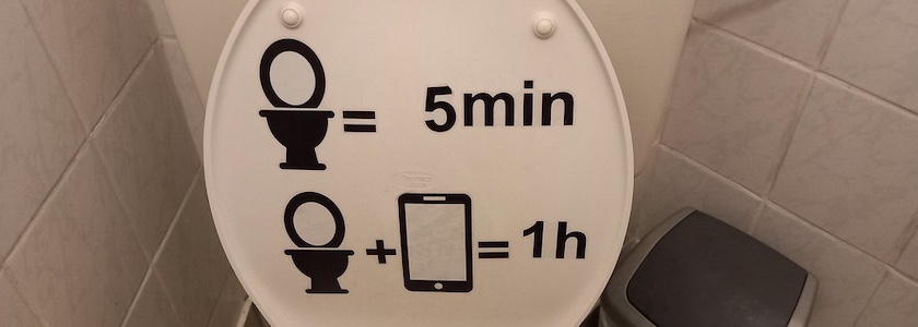 Wer immer noch naiv glaubt, mit einem Smartphone ginge heutzutage alles schneller, der hat noch nie diese Warnung auf der Innenseite eines Toilettendeckels in einer Neuköllner Kneipe gesehen.