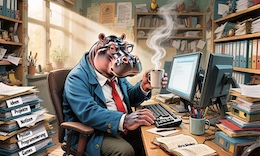 HiDream-I1 ist ein kostenloser Bildgenerator, mit dem Ihr auf dieser Seite Bilder in unbegrenzter Anzahl für umme generieren könnt (es gibt jedoch auch kostenpflichtige Accounts, die auf Wassermarken und Anzeigen verzichten). Auch wenn der Generator gerne die Regale wegläßt und dafür auf Post-Its an den Wänden setzt, und die Textdarstellung verbesserungswürdig ist, die Ergebnisse sind eigentlich nicht schlecht. Allerdings ist der Stil nicht immer einheitlich, er schwankt in diesem Beispiel zwischen flachem Comic und Photorealismus.