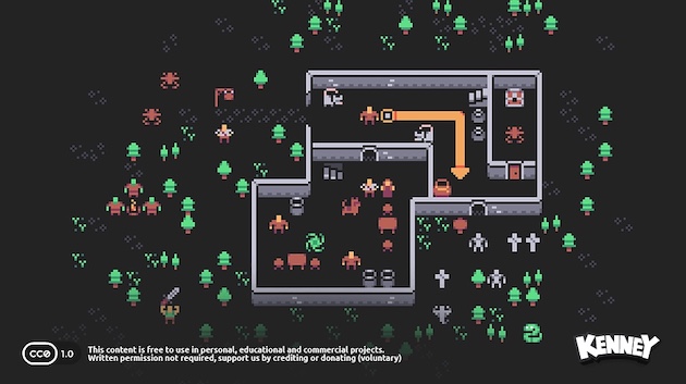 Doch manchmal sind selbst \(16\) x \(16\) Pixel große Tilesets immer noch zu groß. Pyxel zum Beispiel funktioniert am Einfachsten mit \(8\) x \(8\) Pixel großen Tiles und Sprites. Doch diese sind dünn gesät. Hier kann nur Kenney helfen. Sein Micro Roguelike (Bild oben) deckt die Grundlagen für diese winzigen Assets ab und von seinem Pico-8 City Set habe ich gelernt, wie man die winzigen Figürchen in Pyxel animieren kann.