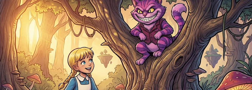 Als ich kürzlich mit einer der gekünstelten Intelligenzias meines Vertrauens eine Reihe von Bildern für das Projekt meiner Reise zurück ins Wunderland generierte, schaute auf vielen der erzeugten Bilder die kleine Alice für meinen Geschmack zu ernst. Das lag wohl in der Hauptsache daran, daß sie auch in dem nach dieser Methode erzeugten Referenzbild nicht gerade fröhlich in die Weltgeschichte schaute.