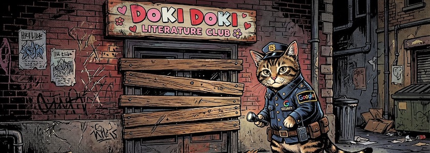 Google hat das beliebte Psychohorror-Spiel »Doki Doki Literature Club!« aus dem Play Store entfernt. Laut Dan Salvato, dem Leiter des Entwicklerteams, und dem Publisher Serenity Forge begründete Google die Entfernung der Visual Novel mit einem Verstoß gegen die Nutzungsbedingungen aufgrund der Darstellung sensibler Themen. Das kostenlose Spiel ist eines der beliebtesten und weltweit erfogreichsten Visual Novels. Obwohl es zunächst wie eine unbeschwerte Dating-Simulation wirkt, ist es ein metafiktionales psychologisches Horrorspiel, das die vierte Wand ausgiebig durchbricht.