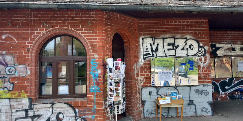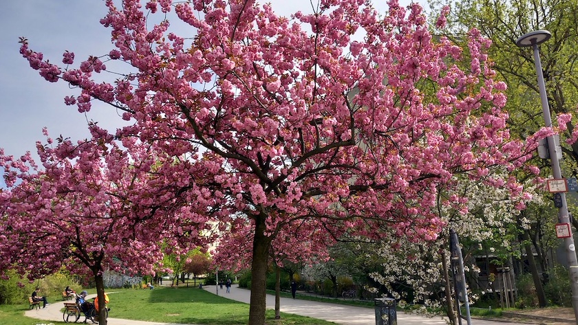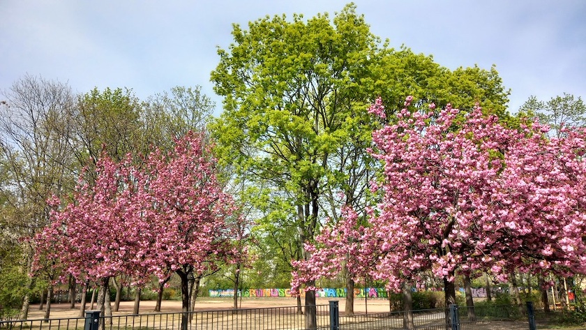 Am Sonnabend waren die liebste aller Freundinnen und ich mal wieder unterwegs. Angeregt durch eine Pressemitteilung des Bezirksamts Pankow wollten wir die Ausstellung »40 Jahre Kultur im Ernst-Thälmann-Park« im Geschichtskiosk an der Pforte am Eingang der Kulturinsel im Ernst-Thälmann-Park besuchen und gleichzeitig ein wenig durch den Park schlendern und den Frühling geniessen.