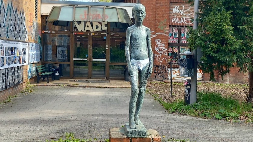 Im Eingangsbereich an der Danziger Straße vor der WABE steht die von Sabina Grzimek (geb. 1942) geschaffene Bronzefigur »Stehender Knabe«.